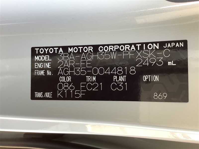 車台番号(下3桁)【818】