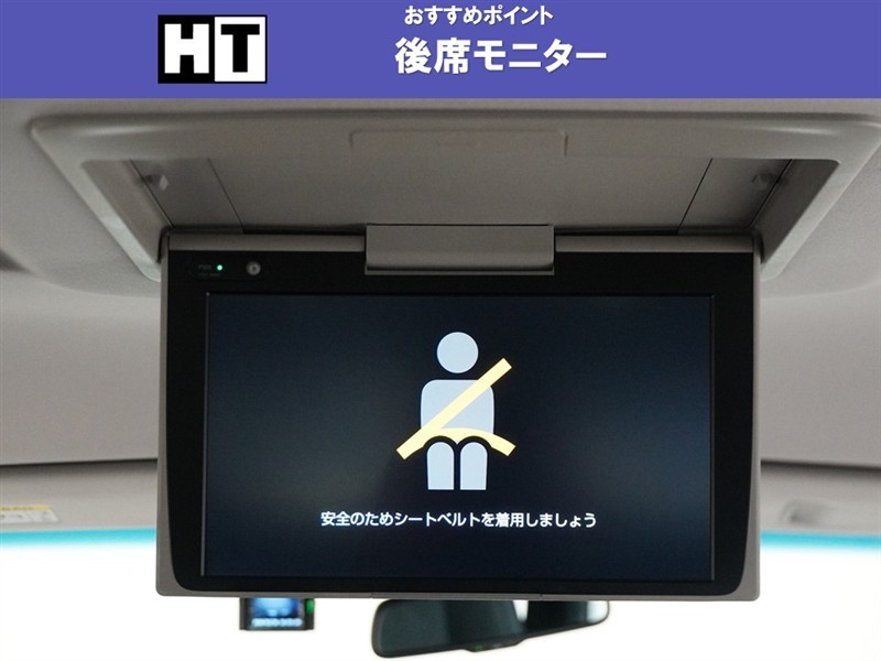 【後席モニター】折りたたんで収納できるので使用しないときには邪魔になりません。長時間のドライブには是非音楽や映画を楽しんでください。(V12T-R68C)