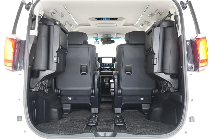 3列目を左右に跳ね上げるタイプです。ワンタッチでスイスイと跳ね上がるので女性でも簡単に格納操作できますのでご安心を☆