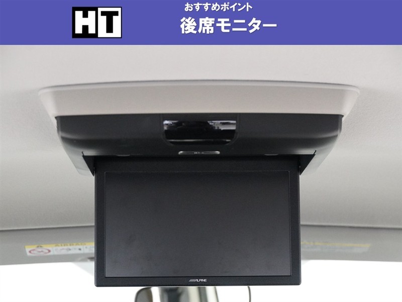 【後席モニター】折りたたんで収納できるので使用しないときには邪魔になりません。長時間のドライブには是非音楽や映画を楽しんでください。