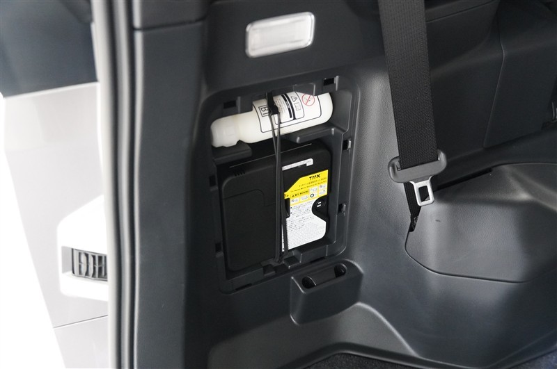 もしもの時のパンク修理キット。空気バルブに薬剤を入れて電動コンプレッサで空気を送り込むだけなので危険な作業や体力が少なくてすみます。ですがあくまで応急処置の為本修理が必要です。