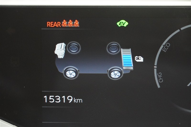 EVモードは電気モーターのみを使って走行するモードです。深夜の住宅街、屋内駐車場でエンジン騒音や排気ガスを気にすることなく走行できます。