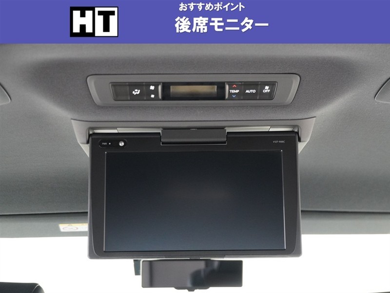 【後席モニター】折りたたんで収納できるので使用しないときには邪魔になりません。長時間のドライブには是非音楽や映画を楽しんでください。