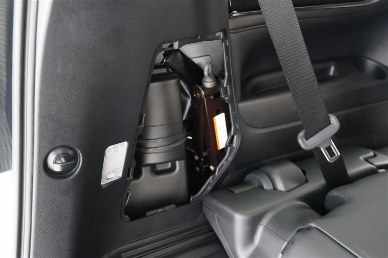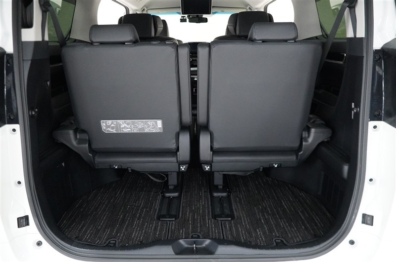 3列目シートは跳ね上げ式で折りたたみ可能です。キャンプ用品など大きな荷物もばっちり収納可能です!