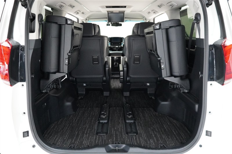 3列目を左右に跳ね上げるタイプです。ワンタッチでスイスイと跳ね上がるので女性でも簡単に格納操作できますのでご安心を☆