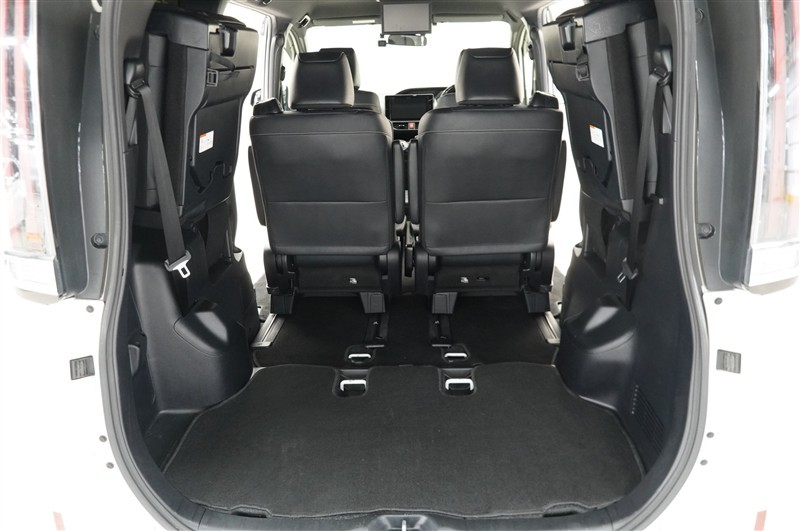 3列目を左右に跳ね上げるタイプです。ワンタッチでスイスイと跳ね上がるので女性でも簡単に格納操作できますのでご安心を☆