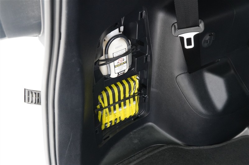 もしもの時のパンク修理キット。空気バルブに薬剤を入れて電動コンプレッサで空気を送り込むだけなので危険な作業や体力が少なくてすみます。ですがあくまで応急処置の為本修理が必要です。