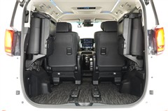 3列目を左右に跳ね上げるタイプです。ワンタッチでスイスイと跳ね上がるので女性でも簡単に格納操作できますのでご安心を☆