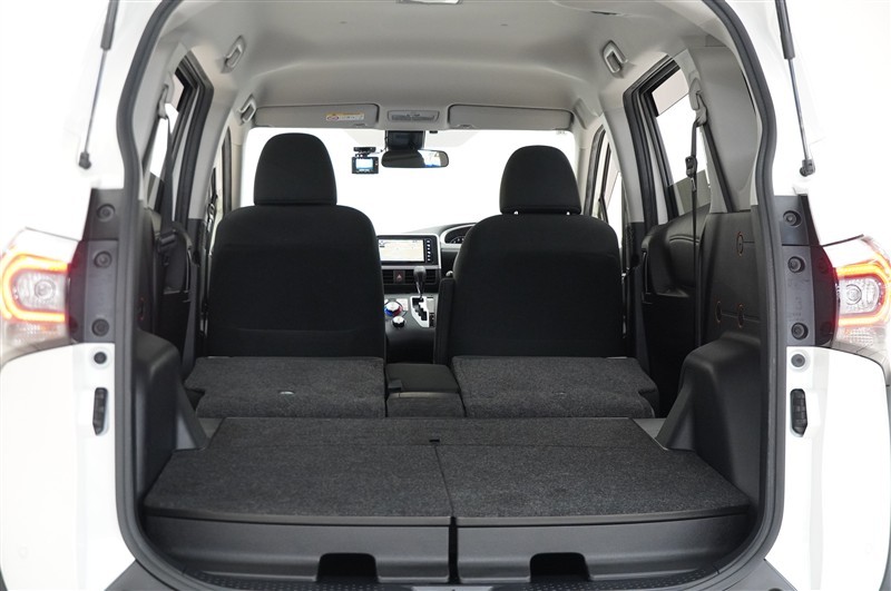 後席を倒すとラゲッジスペースが広がります。