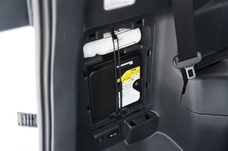 もしもの時のパンク修理キット。空気バルブに薬剤を入れて電動コンプレッサで空気を送り込むだけなので危険な作業や体力が少なくてすみます。ですがあくまで応急処置の為本修理が必要です。