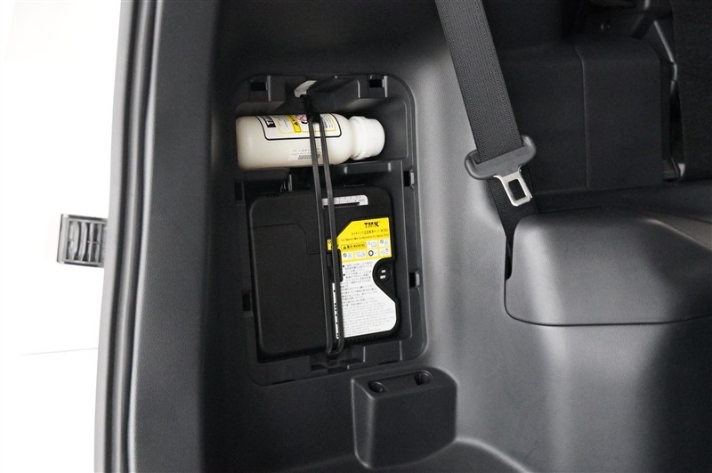 もしもの時のパンク修理キット。空気バルブに薬剤を入れて電動コンプレッサで空気を送り込むだけなので危険な作業や体力が少なくてすみます。ですがあくまで応急処置の為本修理が必要です。