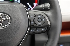 ハンドルから手をはなさずにオーディオ操作ができる便利なステアリングスイッチです。