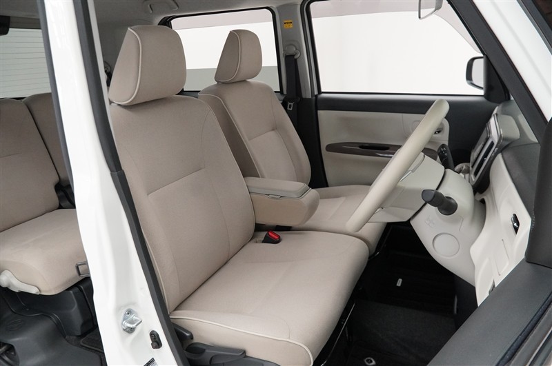 空間を広く使えるベンチシートは快適です。運転席⇔助手席の移動が簡単なので狭い駐車場などで役立ちます。