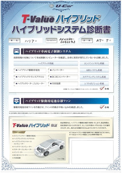 【ハイブリッドシステム診断書】ハイブリッド機構を無償で保証します。保証期間は、初度登録年月から10年目まで、または3年間の長い方。ただし累計走行距離が20万km以内です。