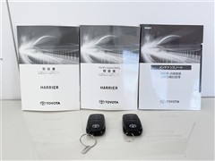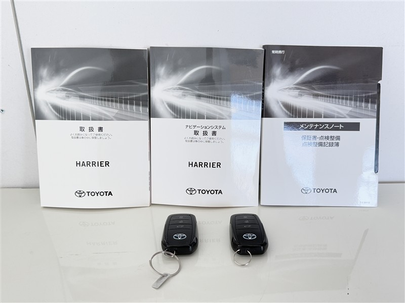 【取説とエンジンキー】スマートキーと取扱説明書です。スマートキーを携帯していれば、ドアノブに触れるだけでドアの解錠・施錠が可能です。取扱説明書では、車の機能もしっかり確認できます。