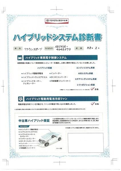 【ハイブリッドシステム診断書】ハイブリッド機構を無償で保証します。保証期間は、初度登録年月から10年目まで、または3年間の長い方。ただし累計走行距離が20万km以内です。