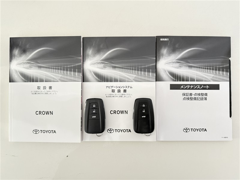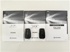 【取説とエンジンキー】スマートキーと取扱説明書です。スマートキーを携帯していれば、ドアノブに触れるだけでドアの解錠・施錠が可能です。取扱説明書では、車の機能もしっかり確認できます。