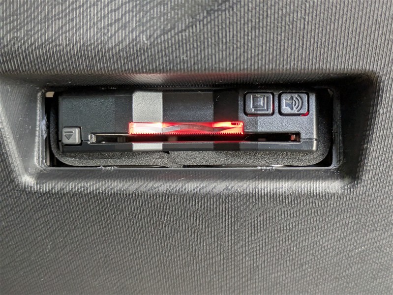 バニティミラー付サンバイザー。前席のサンバイザー裏に装備される小さなミラーです。