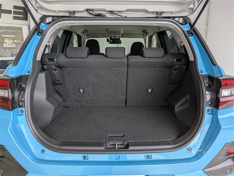 とても広々、大きな開口部の荷室スペースですね。 開口部広々だから、大きな荷物も楽々収納出来ちゃいますね。 荷物スペースは広いほうがいいですよね。