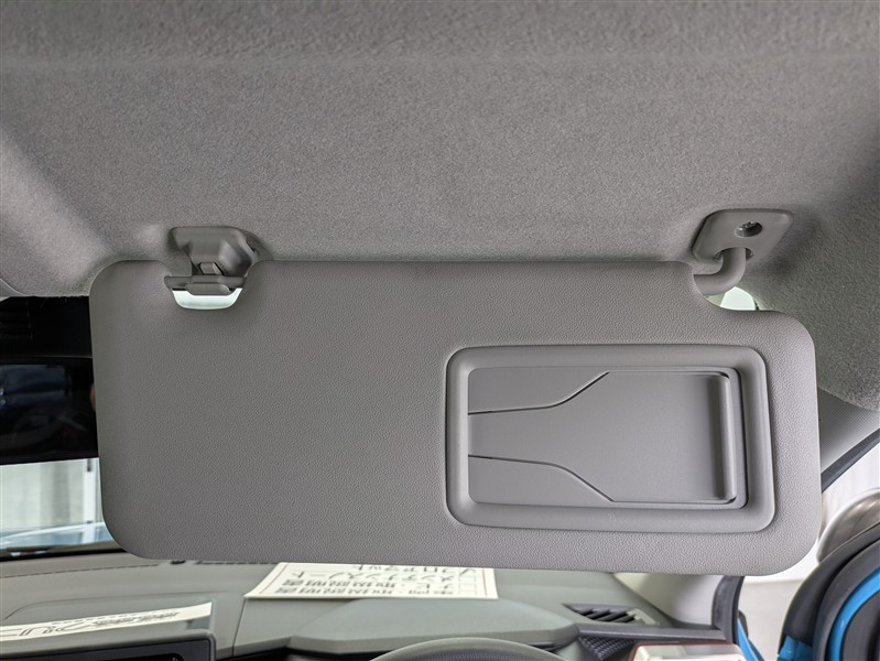バニティミラー付サンバイザー。前席のサンバイザー裏に装備される小さなミラーです。