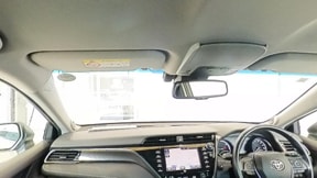 バニティミラー付サンバイザー。前席のサンバイザー裏に装備される小さなミラーです。