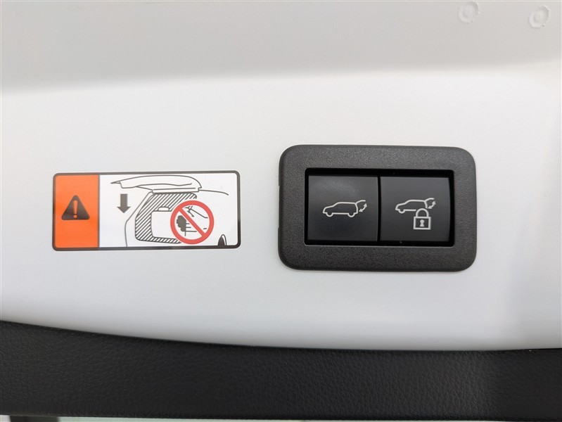 バックドアはパワーバックドアです。高い位置まで開く重たいドアをボタン操作で閉められる嬉しい装備です。スイッチまたはキー操作で開閉できるので、荷物を持っていても安心です。