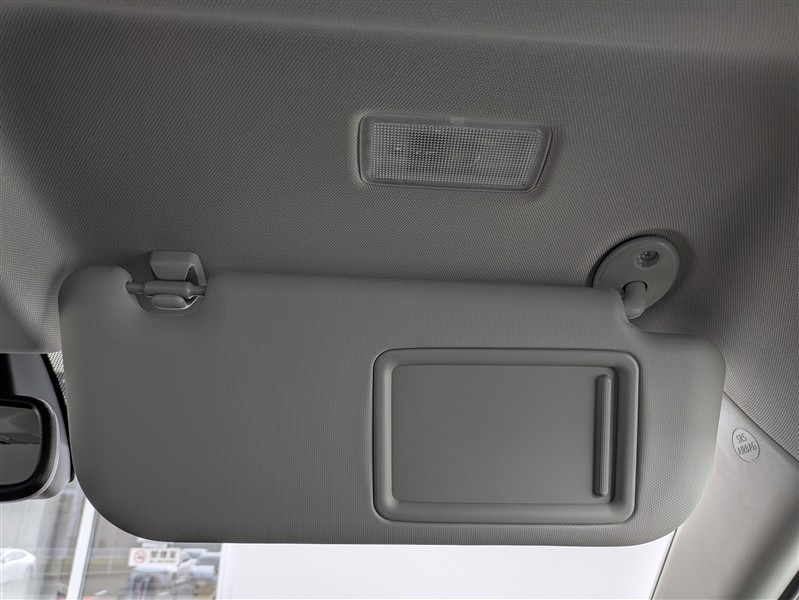 バニティミラー付サンバイザー。前席のサンバイザー裏に装備される小さなミラーです。