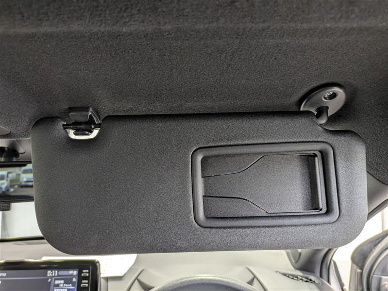 バニティミラー付サンバイザー。前席のサンバイザー裏に装備される小さなミラーです。