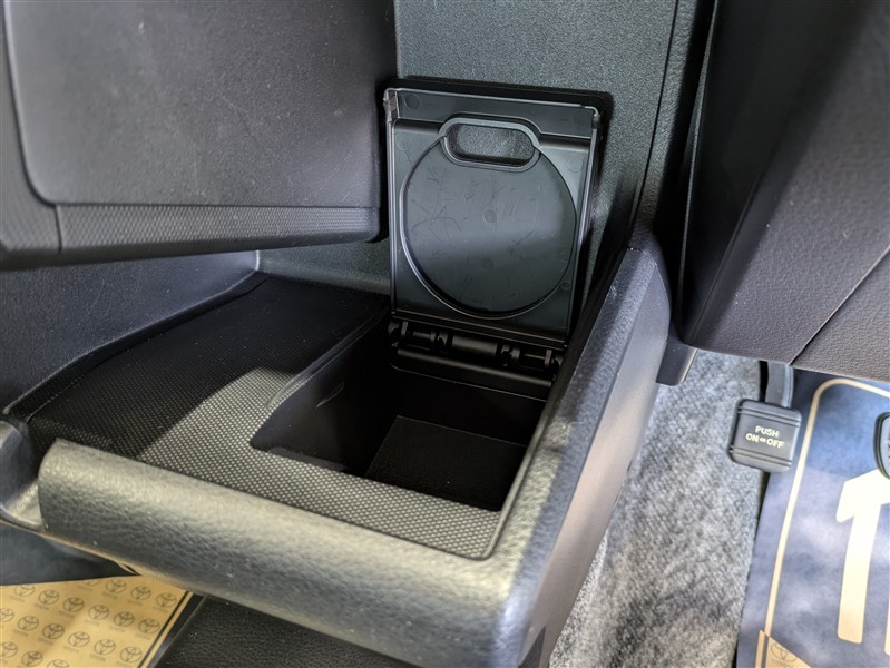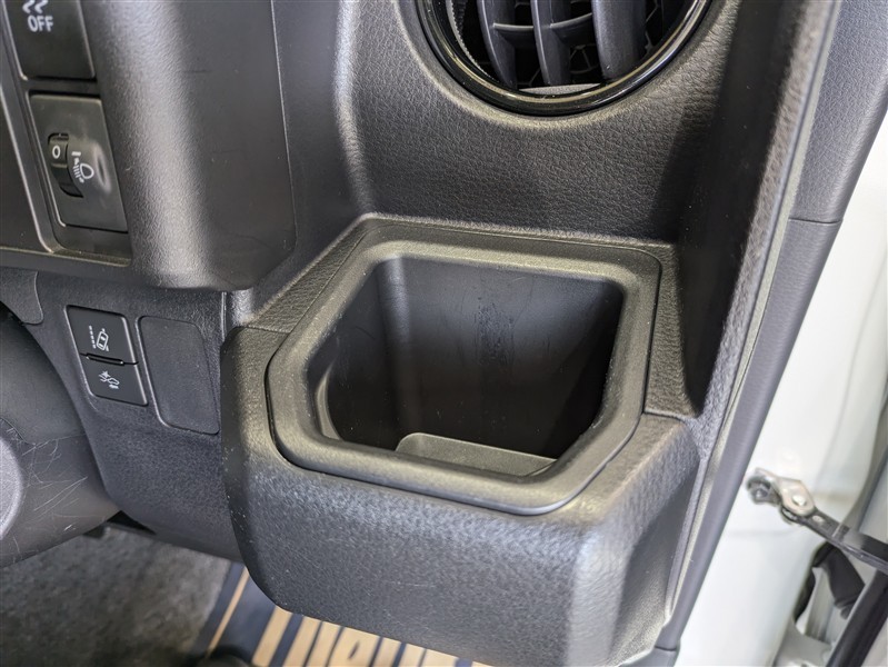 便利なカップホルダーを装備しています。 缶ジュースを開けて運転していると振動で倒れないかヒヤヒヤ、意外と置き場に困るもの。 意外に重要な装備ですね。