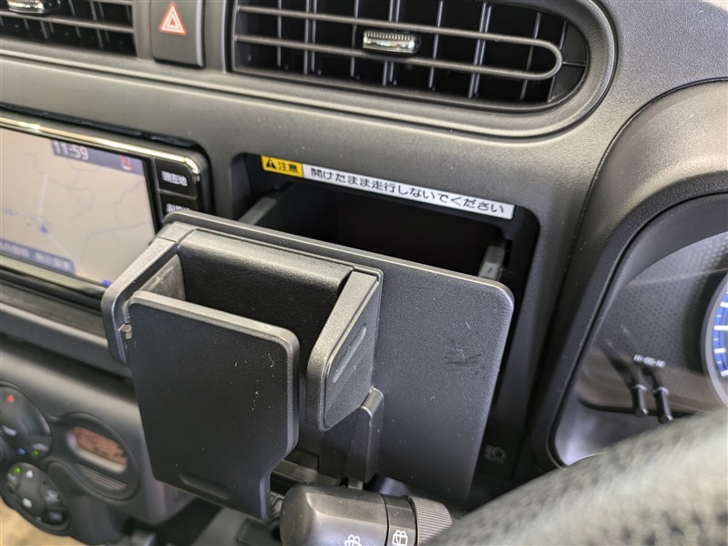 マルチホルダ-はスマ-トフォン等の携帯機器やメモ用紙、名刺などを収納するための装備です。収納するモノの大きさに合わせて幅の調整が出来ます。プッシュすると小物入れが出現します。