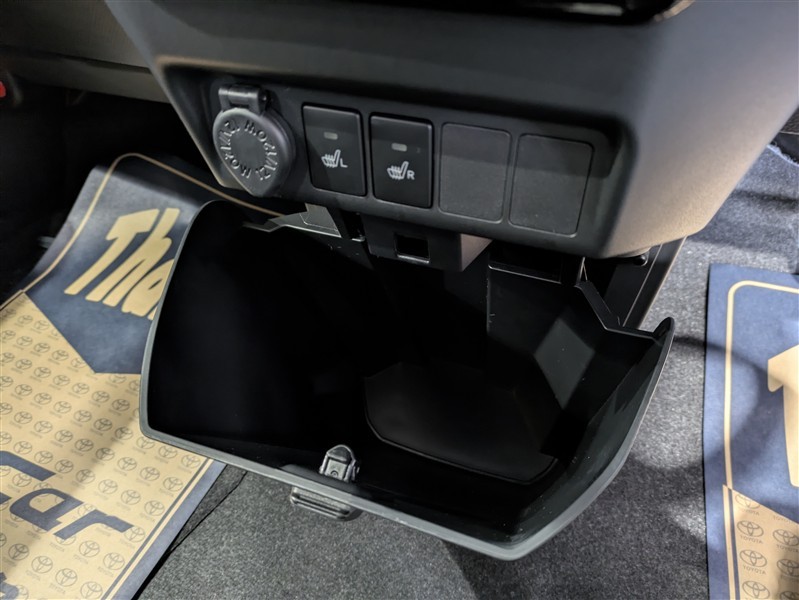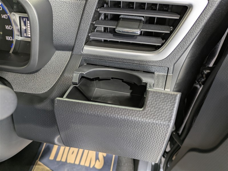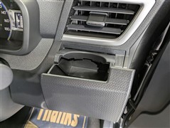 便利なカップホルダーを装備しています。 缶ジュースを開けて運転していると振動で倒れないかヒヤヒヤ、意外と置き場に困るもの。 意外に重要な装備ですね。