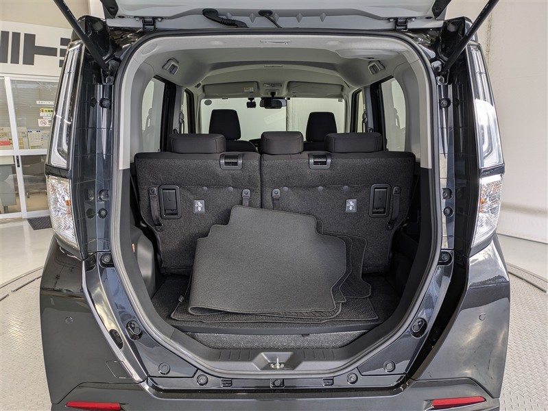 とても広々、大きな開口部の荷室スペースですね。 開口部広々だから、大きな荷物も楽々収納出来ちゃいますね。 荷物スペースは広いほうがいいですよね。