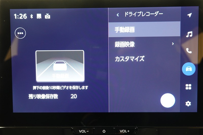ドライブレコーダーは車載カメラを前後を内蔵メモリに保存。映像はディスプレイオーディオで確認できます。