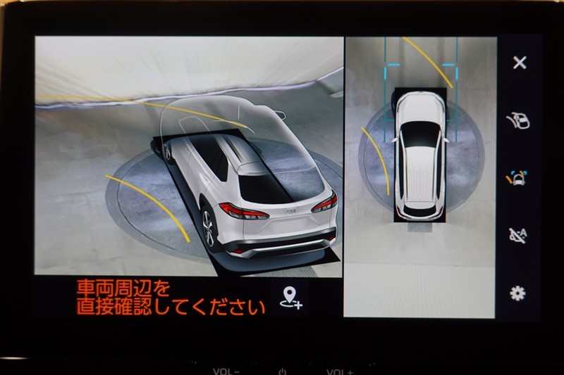 パノラミックビューモニター付きです。車両を上から見たような映像をディスプレイオーディオ画面に表示。運転席からの目視だけでは見にくい、車両周辺の状況をリアルタイムでしっかり確認できます。