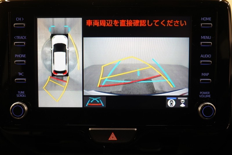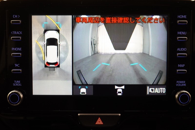パノラミックビューモニター付きです。車両を上から見たような映像をディスプレイオーディオ画面に表示。運転席からの目視だけでは見にくい、車両周辺の状況をリアルタイムでしっかり確認できます。
