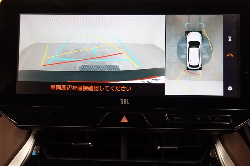 パノラミックビューモニター付きです。車両を上から見たような映像をディスプレイオーディオ画面に表示。運転席からの目視だけでは見にくい、車両周辺の状況をリアルタイムでしっかり確認できます。