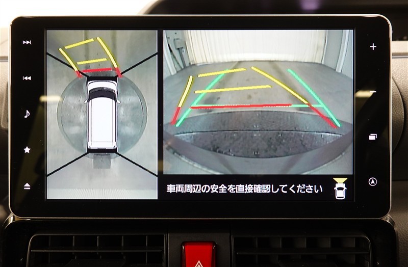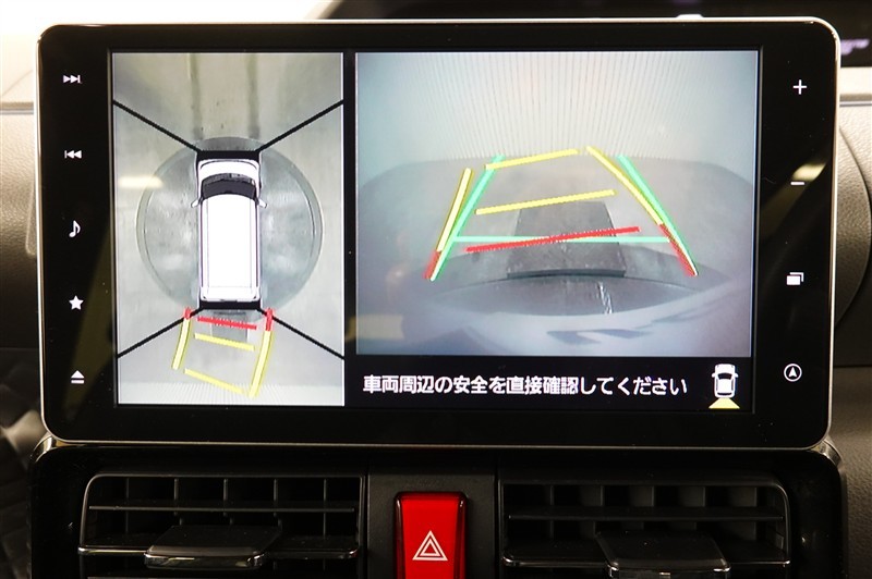 パノラミックビューモニター付きです。車両を上から見たような映像をディスプレイオーディオ画面に表示。運転席からの目視だけでは見にくい、車両周辺の状況をリアルタイムでしっかり確認できます。