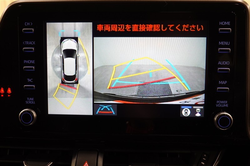 パノラミックビューモニター付きです。車両を上から見たような映像をディスプレイオーディオ画面に表示。運転席からの目視だけでは見にくい、車両周辺の状況をリアルタイムでしっかり確認できます。