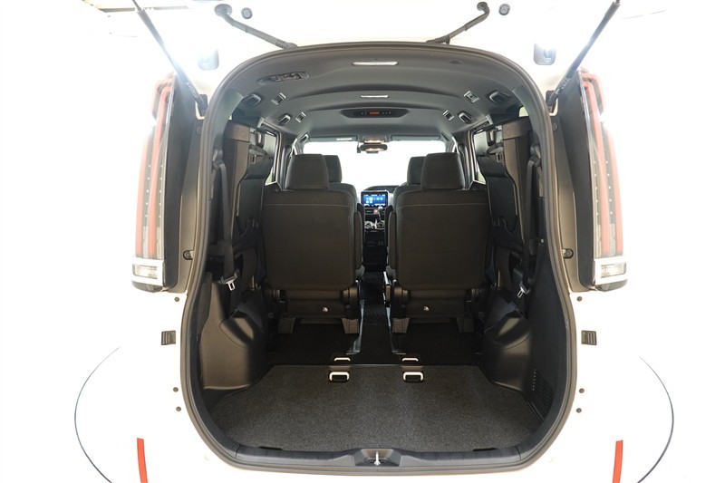 3列目シートは跳ね上げ式で折りたたみ可能です。キャンプ用品など大きな荷物もばっちり収納可能です!