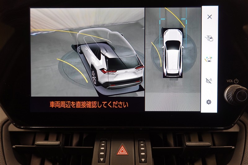 パノラミックビューモニター付きです。車両を上から見たような映像をディスプレイオーディオ画面に表示。運転席からの目視だけでは見にくい、車両周辺の状況をリアルタイムでしっかり確認できます。