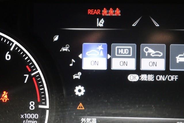 HUD(ヘッドアップディスプレイ) 速度などの情報がフロントガラスに投影されるので、目線を大きく動かすことなく確認できます。