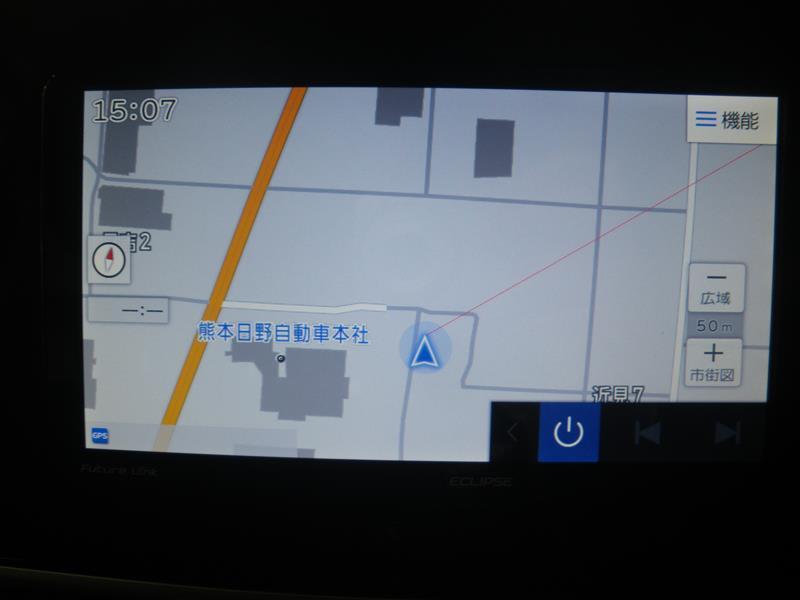 バックモニター付き。車両後方の映像がナビ画面に表示されるので、車庫入れが苦手な人も安心です。ただし、目視確認もお忘れなくお願いいたします。