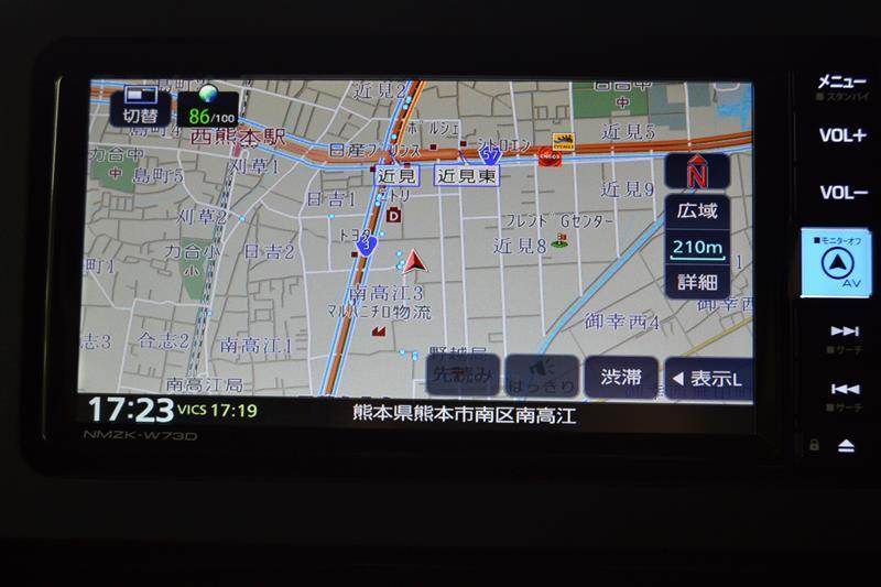 バックモニター付き。車両後方の映像がナビ画面に表示されるので、車庫入れが苦手な人も安心です。ただし、目視確認もお忘れなくお願いいたします。