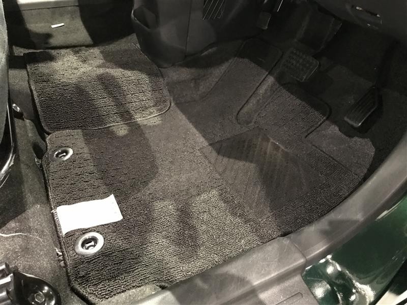 内装工程では、中古車を気持ちよくお乗りいただけるよう清掃しております。シートの洗浄はもちろん、ニオイの元となるフロアカーペットまで洗浄・消臭を実施。