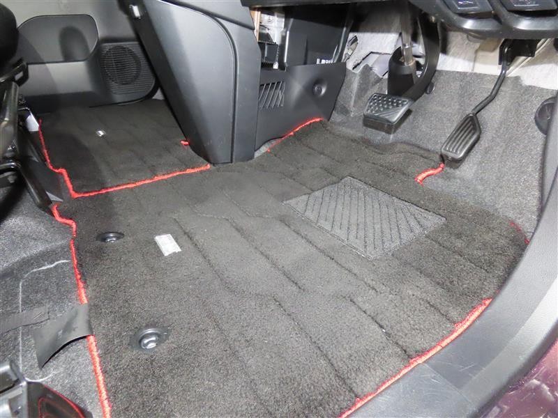 内装工程では、中古車を気持ちよくお乗りいただけるよう清掃しております。シートの洗浄はもちろん、ニオイの元となるフロアカーペットまで洗浄・消臭を実施。