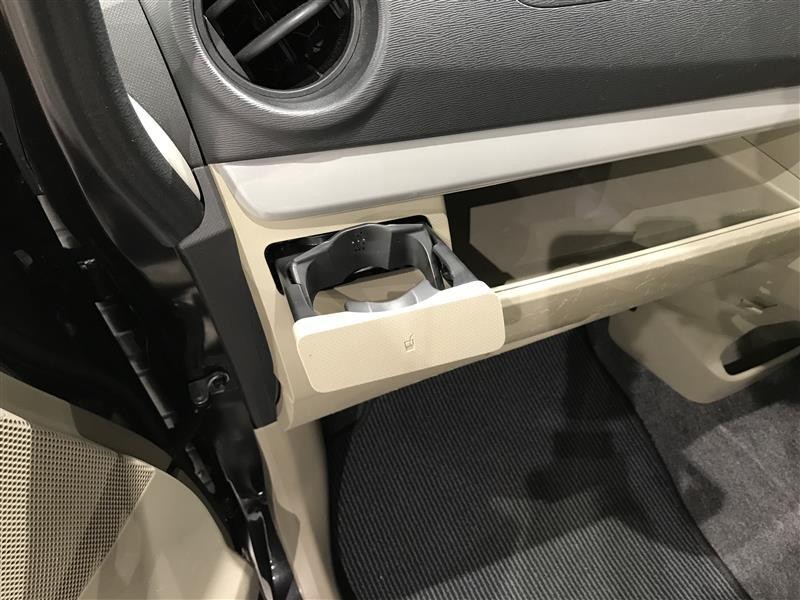 格納式のドリンクホルダー付きです。ドリンクホルダーとしてはもちろん、スマホや長財布を収納することだってできますよ。