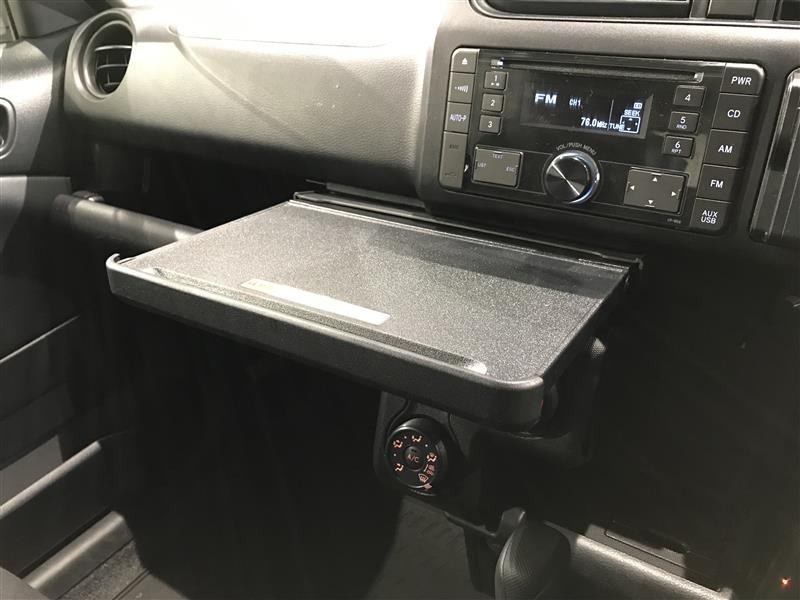 書類作成や軽食を取る際に便利な収納式テーブルついています。
