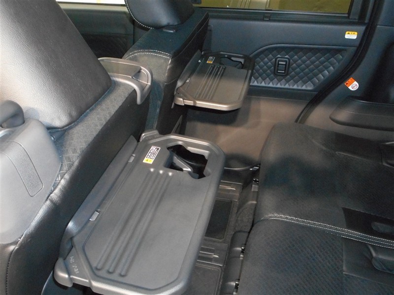 フロントシートの後ろに折りたたみ式のテーブルが付いているので飲み物や食べ物などを気軽におく事ができ、車内での休憩も快適です♪