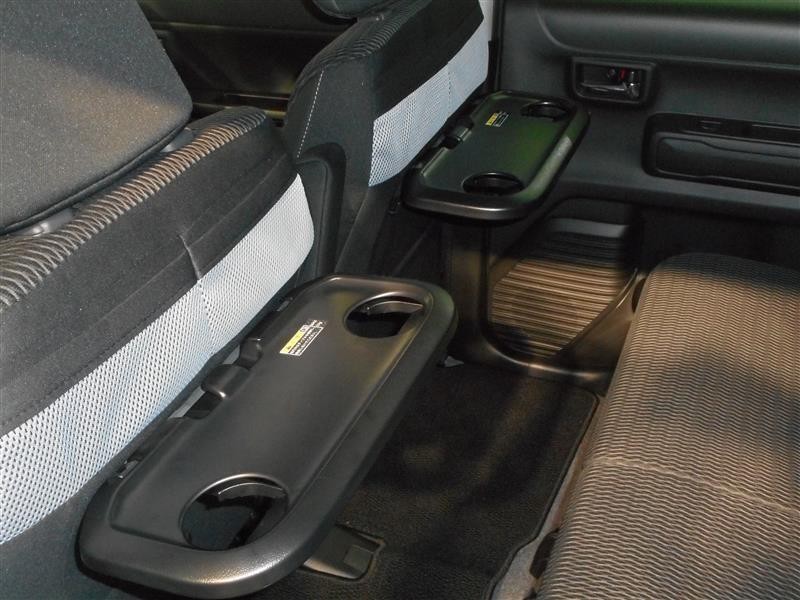 フロントシートの後ろに折りたたみ式のテーブルが付いているので飲み物や食べ物などを気軽におく事ができ、車内での休憩も快適です♪