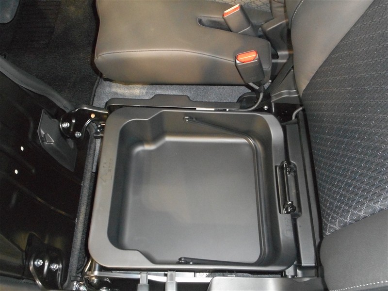 【助手席シートアンダーボックス】座面下にも収納スペースがあります。持ち運び可能で意外と便利な収納スペースです!